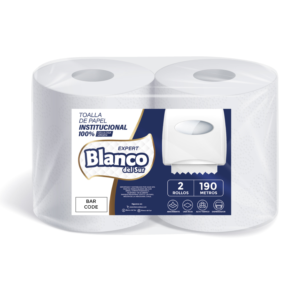 Toalla de Papel Institucional 2 Rollos 190 Metros – Blanco del Sur